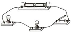 【跟踪训练2】请用笔画线代替导线,在图中将两个灯泡、开关连成串联电路。