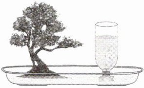 7. 新素养〔科学思维〕小明为家中的盆景设计了一个自动供水装置,如图所示,用一个塑料瓶装满水倒放在盆景盘中,瓶口刚刚被水浸没。当盘中的水位下降到使瓶口露出水面时,空气进入瓶中,瓶中就会有水流出现,使盘中的水位升高,瓶口又被浸没,瓶中的水不再流出。这样盆景盘中的水位可以保持一定的高度。塑料瓶中的水不会全部流掉的原因是(