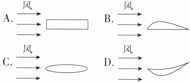 3. 新考法〔创新性实验〕乐山某初中学校开展以“苍穹”为主题的飞机模型制作大赛,要让飞机获得升力,机翼横截面的形状应设计成(