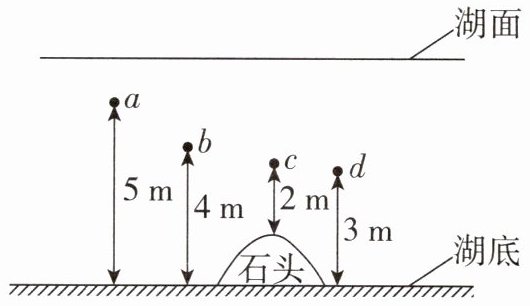 2. 在平静的湖中,不同位置的湖水压强会有所不同,如图所示,湖水的压强最小的位置是(