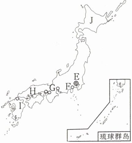 (1)图中 J 代表______岛,将以下岛屿名称的代号填在图上。