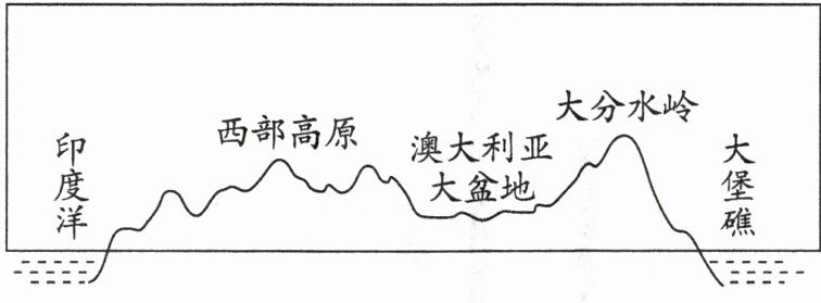 1. 读澳大利亚沿南回归线地形剖面图,可知澳大利亚沿南回归线地势特征是(