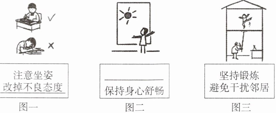 (2)请在图二填入一个四字短语,结构要与图一中的“注意坐姿”相同。要填的短语: