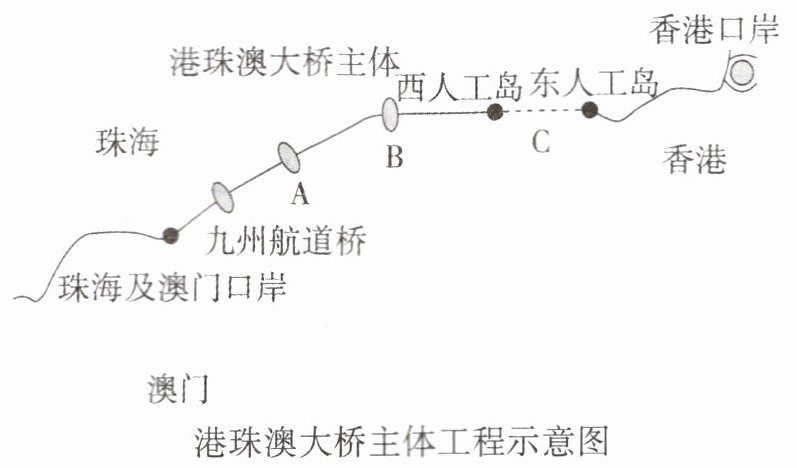 【链接材料】港珠澳大桥主体工程包含三座通航孔桥、东西两座人工岛和海底沉管隧道。东西人工岛采用世界首创深插式钢圆筒快速成岛技术,面积各 10 余万平方米,分别承担观光、休闲服务和大桥救援、养护等功能。海底沉管隧道位于东西人工岛之间。它由 33 节巨型沉管和 1 个合龙段最终接头组成,沉管排水量约 76000 吨,为世界上最重沉管。该隧道与东西人工岛一起,被称为港珠澳大桥核心控制性工程。