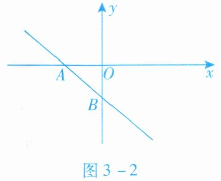 2. 如图3-2所示,一次函数$y= (4m-4)x-3$的图象分别与x轴、y轴的负半轴相交于点A,B,则m的取值范围是(