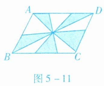 5. 如图 5-11 所示,在$□ ABCD$中,$AC$,$BD$为对角线,$BC= 6$,$BC$边上的高为 4,则阴影部分的面积为(
