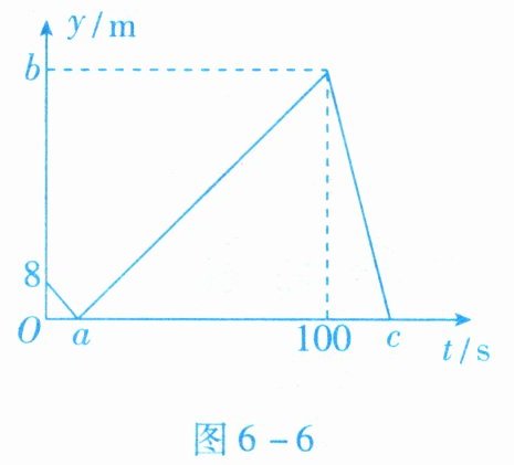 5. 甲、乙两人在直线跑道上同起点、同终点、同方向匀速跑步$500 \mathrm { m }$,先到终点的人原地休息. 已知甲先出发$2 \mathrm { s }$,在跑步过程中,甲、乙两人的距离$y(\mathrm { m })与乙出发的时间t(\mathrm { s })之间的关系如图6 - 6$所示,给出以下结论:①$a = 8$;②$b = 92$;③$c = 123$. 其中正确的是(