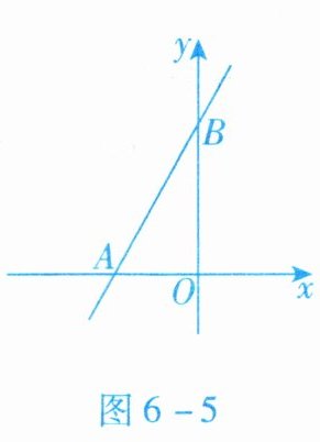 4. 如图$6 - 5$所示,直线$y = k x + b交坐标轴于A(-2,0)$,$B(0,3)$两点,则不等式$k x + b > 0$的解集是(