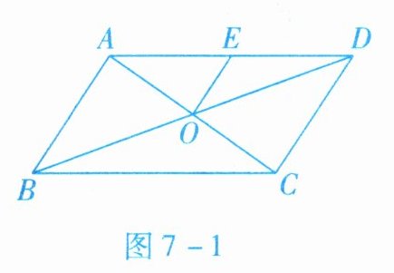 5. 如图$7 - 1$所示,在$□ ABCD$中,$AC与BD相交于点O$,点$E是AD$的中点,$AC = 6\mathrm{cm}$,$BD = 8\mathrm{cm}$,$OE = 1.75\mathrm{cm}$,$\triangle OCD$的周长是____