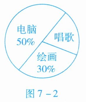 2. 图$7 - 2$是八年级(1)班参加课外兴趣小组人数的扇形统计图,则表示唱歌兴趣小组人数的扇形的圆心角度数是(
