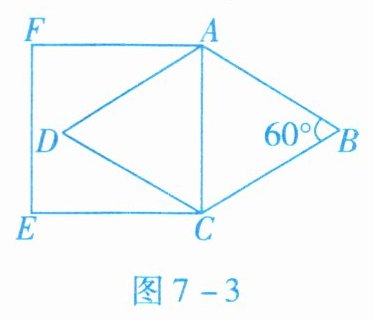 3. 如图$7 - 3$所示,在菱形$ABCD$中,$\angle B = 60^{\circ}$,$AB = 4$,则以$AC为边长的正方形ACEF$的周长为(