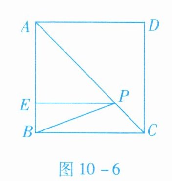 4. 如图$10 - 6$所示,在正方形$ABCD$中,$E是AB$上一点,$B E = 2$,$A E = 3 B E$,$P是AC$上一动点,则$P B + P E$的最小值是