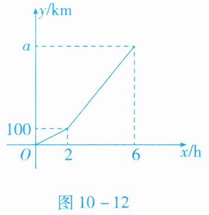 4. 已知$A$,$B两地之间有一条长300\mathrm{km}$的公路,甲车从$A地出发匀速开往B$地,甲车出发$2\mathrm{h}$后,乙车从$B地出发匀速开往A$地,两车同时到达各自的目的地. 两车行驶的路程之和$y$($\mathrm{km}$)与甲车行驶的时间$x$($\mathrm{h}$)之间的函数关系如图$10 - 12$所示.