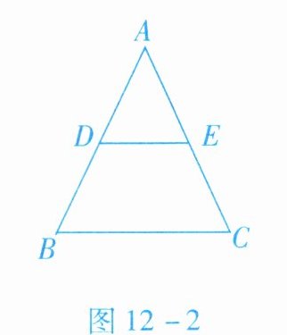 4. 如图 12 - 2 所示,在$\triangle ABC$中,D,E 分别是边 AB,AC 的中点. 若$BC = 6$,则$DE = $