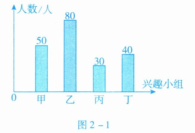 4. 某校报名参加甲、乙、丙、丁四个兴趣小组的学生人数如图2-1所示,那么报名参加甲组和丙组的人数之和占所有报名人数的