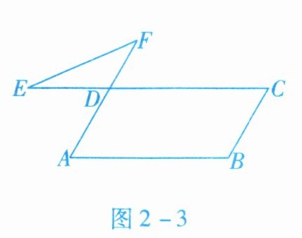 4. 如图2-3所示,在$□ ABCD$中,$\angle B = 110^{\circ}$,延长$AD至点F$,延长$CD至点E$,连接$EF$,则$\angle E+\angle F= $ (