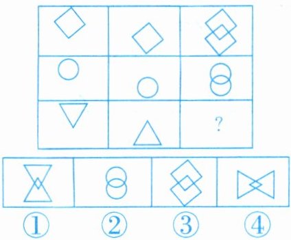 找规律,在标有序号的图形中选一个放入带“?”的方格内。