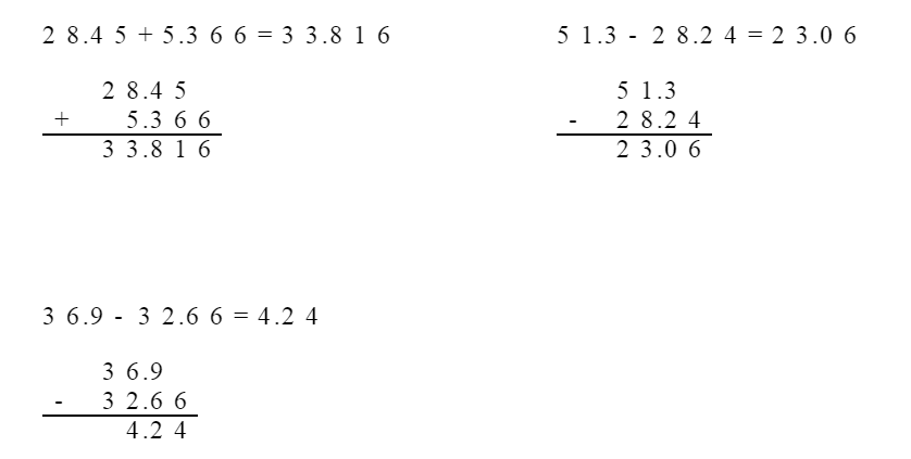 $28.45+5.366$ $51.3-28.24$ $36.9-32.66$