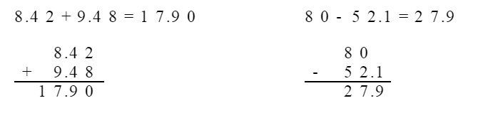 $8.42 + 9.48$ $80 - 52.1$ *$7.35 - 1.14$