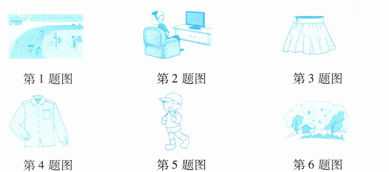 1. playground 2. watch TV 3. skirt 4. shirt 5. on foot 6. windy