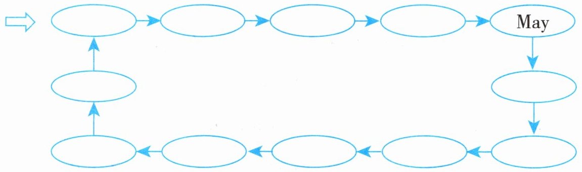 我们已经学习了 12 个月份的英语表达,请填写月份循环图(写月份的缩写形式即可)。想一想这 12 个月份分别属于哪个季节,并写下来。