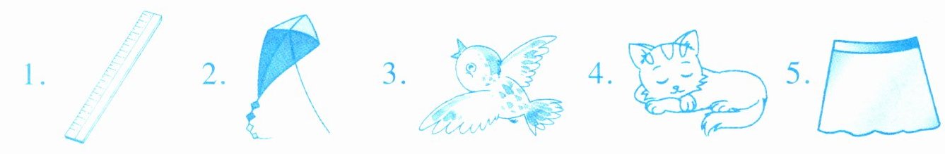 1. ruler 2. kite 3. bird 4. cat 5. skirt