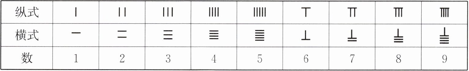 他们用纵横相间的方式表示一个数,如用“三T”表示 37,用“Ⅲ⊥Ⅲ”表示(③)。