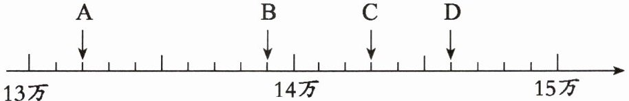 8. 一个数,省略万位后面的尾数约是 14 万,这个数可能是(