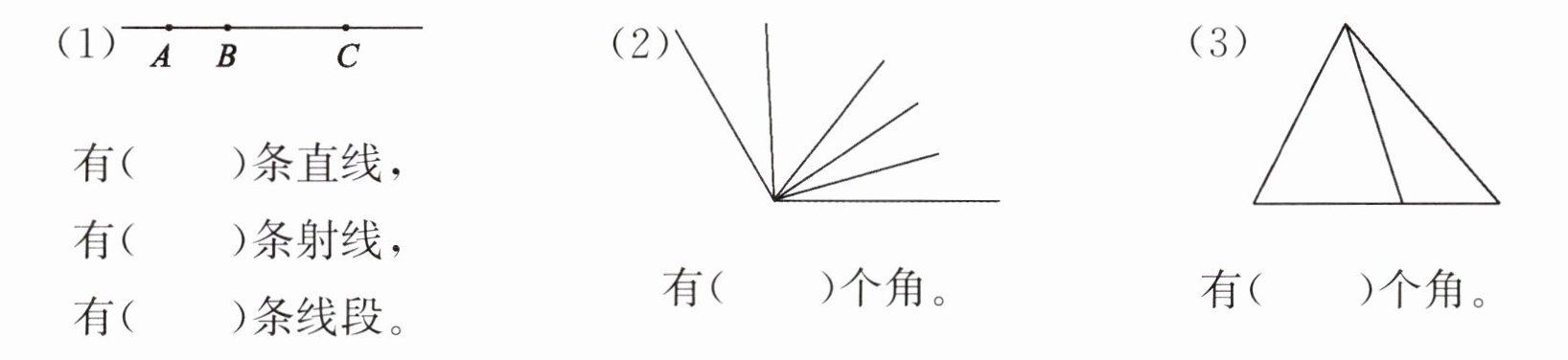 (3) 画一个角,并写出它的各部分名称。