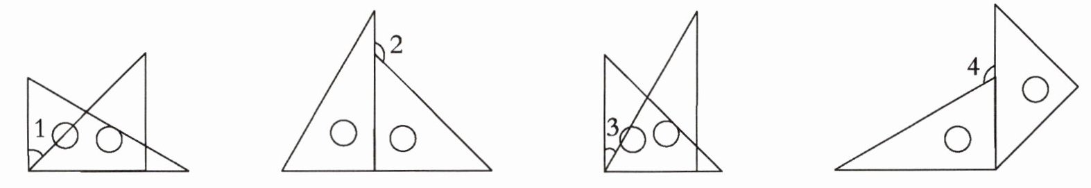 4. 用三角尺摆一摆,再算一算下面的角各是多少度。