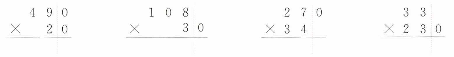 $\begin{array}{r}490\\×\ \ 20\\\hline9800\end{array}$