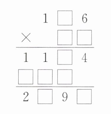 因为$6×4 = 24$,$6×9 = 54$,假设第二个因数的个位数字是$4$,$1□6×4=11□4$,则$106×4 = 424$,$196×4=(200 - 4)×4=800 - 16 = 784$,不符合$11□4$;