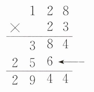 5. 小明每分钟录入$128$个字,$23$分钟能录入多少个字?列竖式计算过程如右图所示,其中“$\leftarrow$”表示( )。