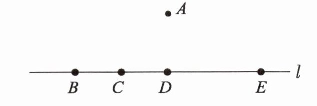 1. 如右图,分别连接点 $ A $ 与直线 $ l $ 上的四点。