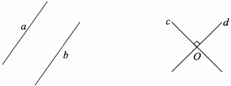 互相平行,$a// b$,$a$平行于$b$;互相垂直,$c\perp d$,$c$垂直于$d$