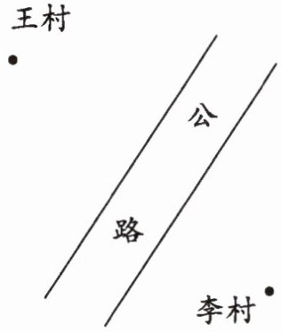2. 王村和李村各修一条水泥路通到公路,怎么修最合理?试着画一画。