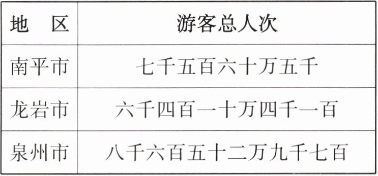 2. 根据右表中 2023 年福建省部分地市接待游客总人次写出表中各数,再省略万位后面的尾数求出近似数。