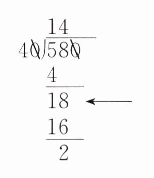 10. 实验小学有 $580$ 名学生参加社会实践活动,每辆客车限乘 $40$ 人,需要多少辆客车?右图竖式中“←”所指的数表示(