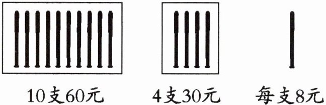 即买2盒10支,4盒4支和3支单买的最便宜,但买1盒4支和买单支的相比,买4支的更便宜,所以应买$2$盒$10$支,$1$盒$4$支和$3$支单买的。