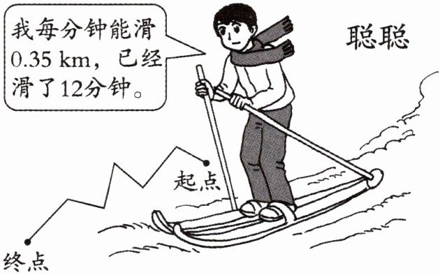 答:聪聪每分钟能滑$0.35$km,已经滑了$12$分钟,根据路程等于速度乘时间,聪聪已经滑行的路程为$0.35×12 = 4.2$(km)。