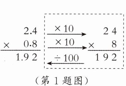 1. 下图是用竖式计算 $2.4×0.8$ 的思考过程,它的依据是(