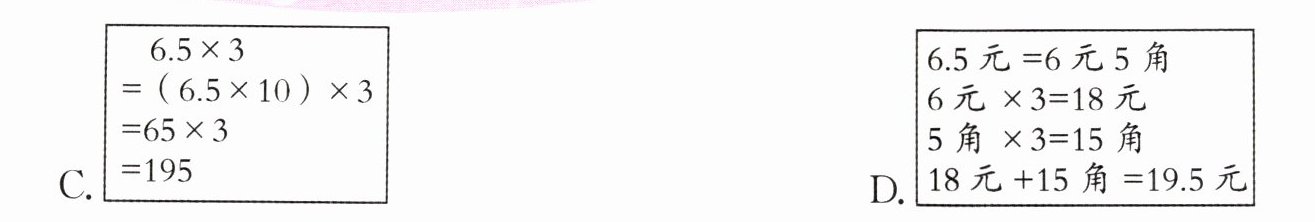 1. 计算 $6.5×3$ 时,下面方法中不正确的是(