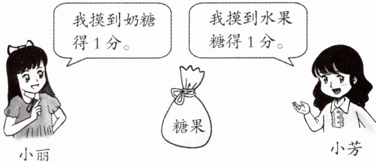 妈妈把一些大小相同的奶糖和水果糖放进袋子里,小丽和小芳各自从袋子里摸出 1 块糖,摸出后需放回袋子里。每人摸 10 次,谁的得分高算谁赢。