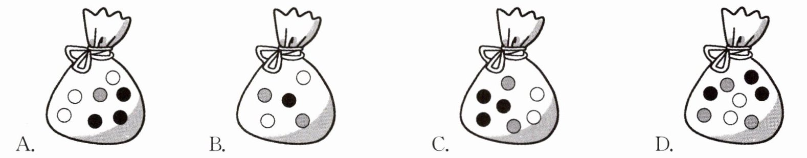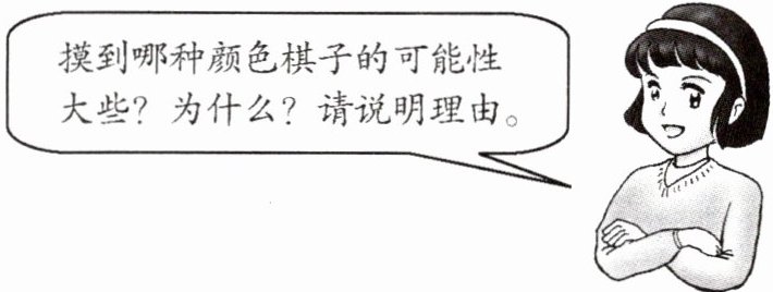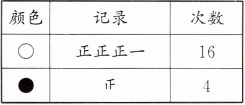 理由:共摸了$20$次,摸到白色棋子$16$次,摸到黑色棋子$4$次。因为$16\gt4$,即摸到白色棋子的次数比摸到黑色棋子的次数多,所以摸到白色棋子的可能性大些。