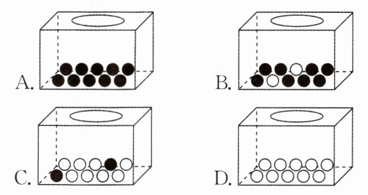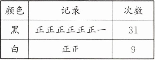 (2)盒中装有黑、白两种颜色的球(除了颜色不同,其他都相同)。小明每次从中摸出一个球,记录下它的颜色,再放回去摇匀,重复 40 次,实验结果如表格。根据表中的数据,小明最有可能是用下面(