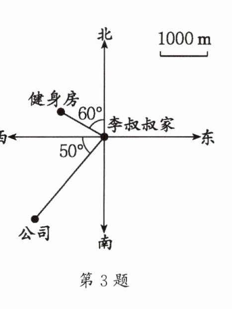 (1)公司和健身房分别在李叔叔家的什么方向?