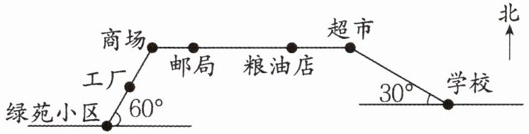 1. 猴园在大象馆()偏()()方向上,距离()米。
