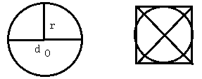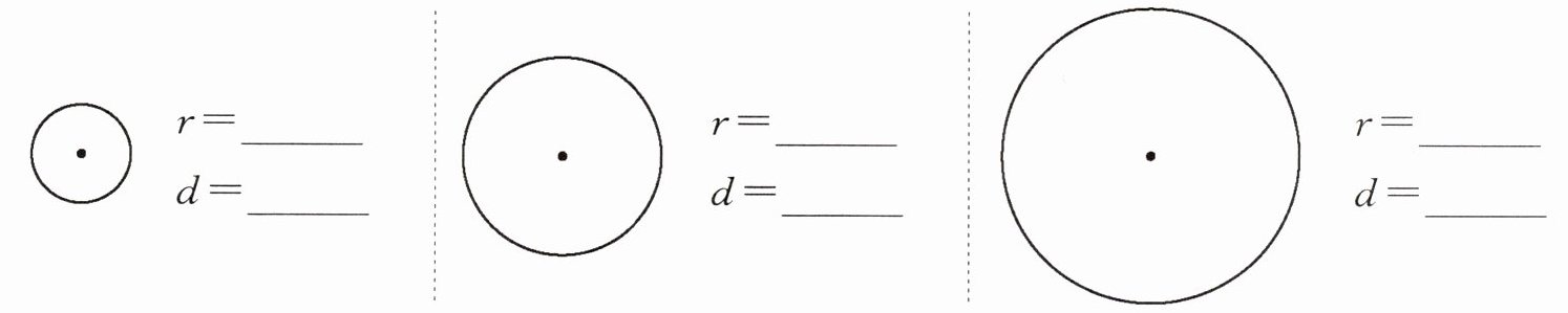2.分别在下面的圆中画一条半径和一条直径,再量一量它们的长。你有什么发现?