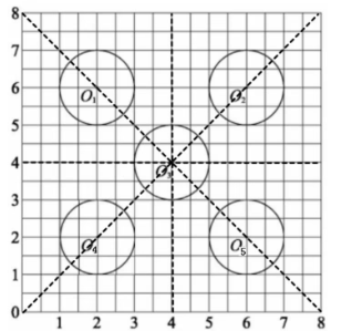 (2)分别把圆$O_{1}$和圆$O_{2}$的圆心移到$(2,2)$和$(6,2)$的位置,并分别画出平移后的圆。