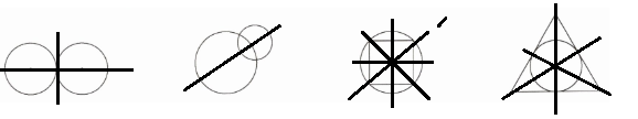 (3)这5个圆能构成一幅图形,请画出它的对称轴,能画几条就画几条。